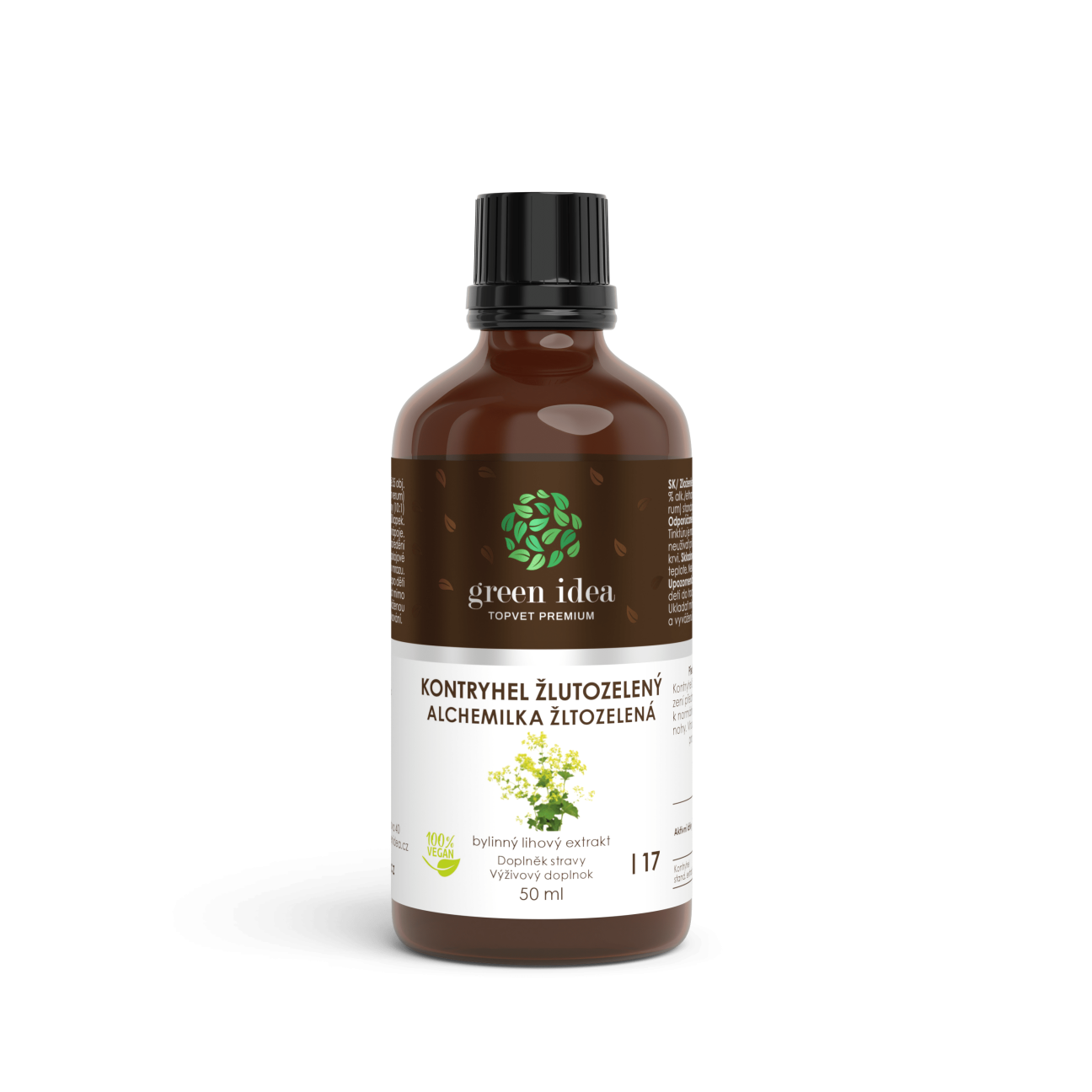 Alchemilka žltozelená – tinktúra – kvapky 50 ml – Green idea je prírodný bylinný extrakt, ktorý podporuje ženské zdravie, cievnu sústavu a trávenie. Vhodná na pravidelné užívanie pre celkové posilnenie organizmu a zlepšenie predmenštruačného komfortu.
