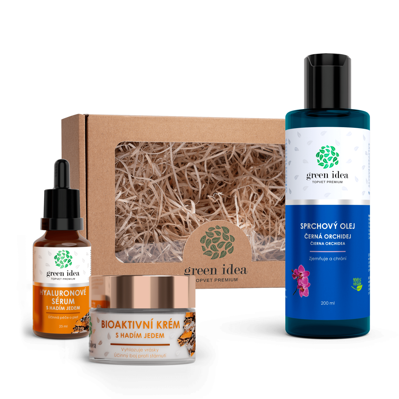 Obdarujte ženu, ktorá túži po dokonalej pleti, jedinečným dotykom luxusu. Darčeková sada obsahuje tri prémiové produkty, ktoré hýčkajú pleť a menia každodennú rutinu na omladzujúci rituál. Bioaktívny krém, hyalurónové sérum a sprchový olej predstavujú ideálnu kombináciu na dosiahnutie žiarivého vzhľadu a intenzívnej hydratácie. Spojenie inovatívnych aktívnych látok a luxusných ingrediencií, ako sú kyselina hyalurónová a hadí jed, poskytuje komplexné ošetrenie, ktoré pomáha vyhladzovať vrásky a podporuje regeneráciu pokožky. Táto sada nie je len skvelým darčekom, ale aj výhodnou voľbou – všetky tri produkty sú dostupné za atraktívnu cenu nižšiu, než keby ste ich kupovali samostatne. Doprajte svojim blízkym výnimočnú starostlivosť a darujte im dar, ktorý skutočne poteší.