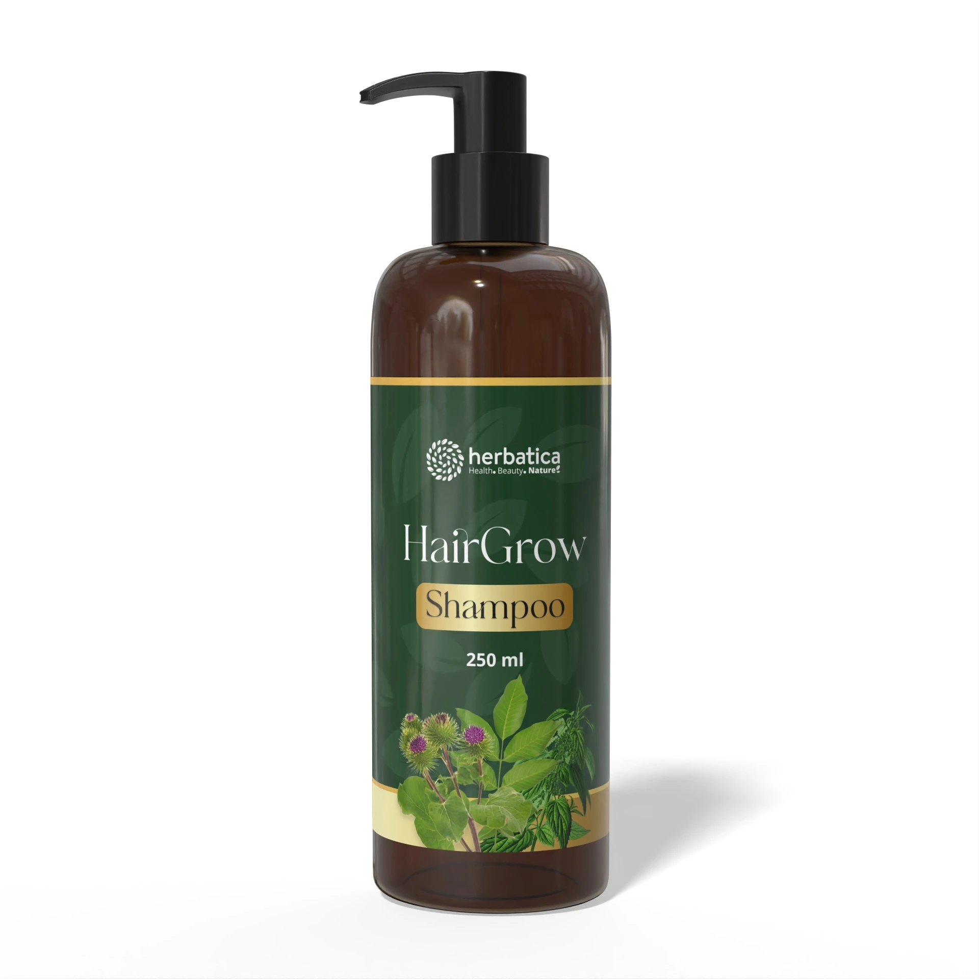 HairGrow Shampoo je jemný bylinný šampón určený na starostlivosť o vlasy a vlasovú pokožku. Obsahuje extrakty z lopúcha, žihľavy a listov orecha, ktoré sa v kozmetike tradične využívajú pri starostlivosti o vlasové korienky a vlasovú pokožku.