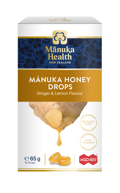 INGREDIENCIE: Trstinový cukor, glukóza, Manuka med (8%), voda, prírodný citrónový olej, prírodný zázvorový extrakt, vitamín C.