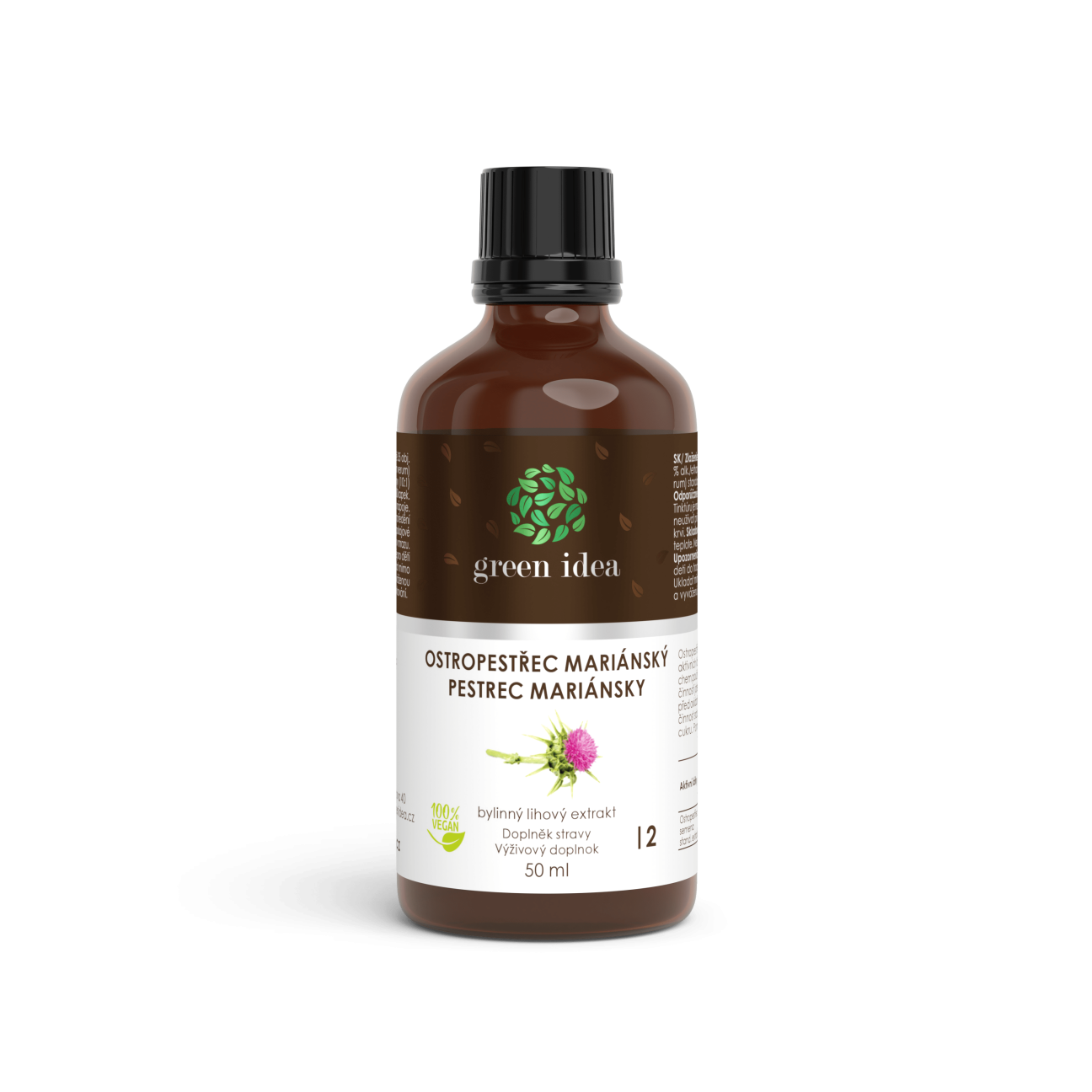Pestrec mariánsky (Silybum marianum) patrí medzi najúčinnejšie byliny na podporu normálnej činnosti pečene a tráviaceho systému. Tinktúra Green idea obsahuje štandardizovaný extrakt s garantovaným 80 % obsahom silymarínu, ktorý je zodpovedný za ochranu a obnovu pečeňových buniek. Vďaka kombinácii vody, liehu a glycerínu sa účinné látky rýchlo vstrebávajú a pôsobia efektívne.