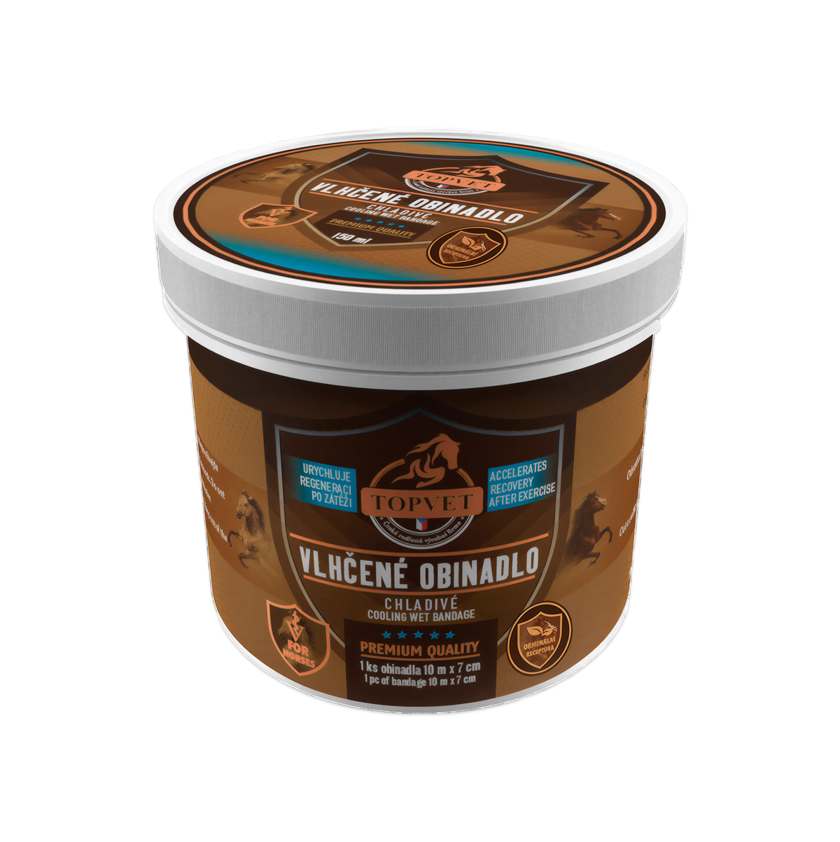 Vlhčený chladivý obväz je praktický veterinárny prípravok určený na podporu regenerácie pohybového aparátu koní po fyzickej záťaži. Elastické obinadlo je napustené účinnou bylinnou kompozíciou s obsahom prírodných extraktov a silíc, ktoré pôsobia chladivo, uvoľňujúco a regeneračne.